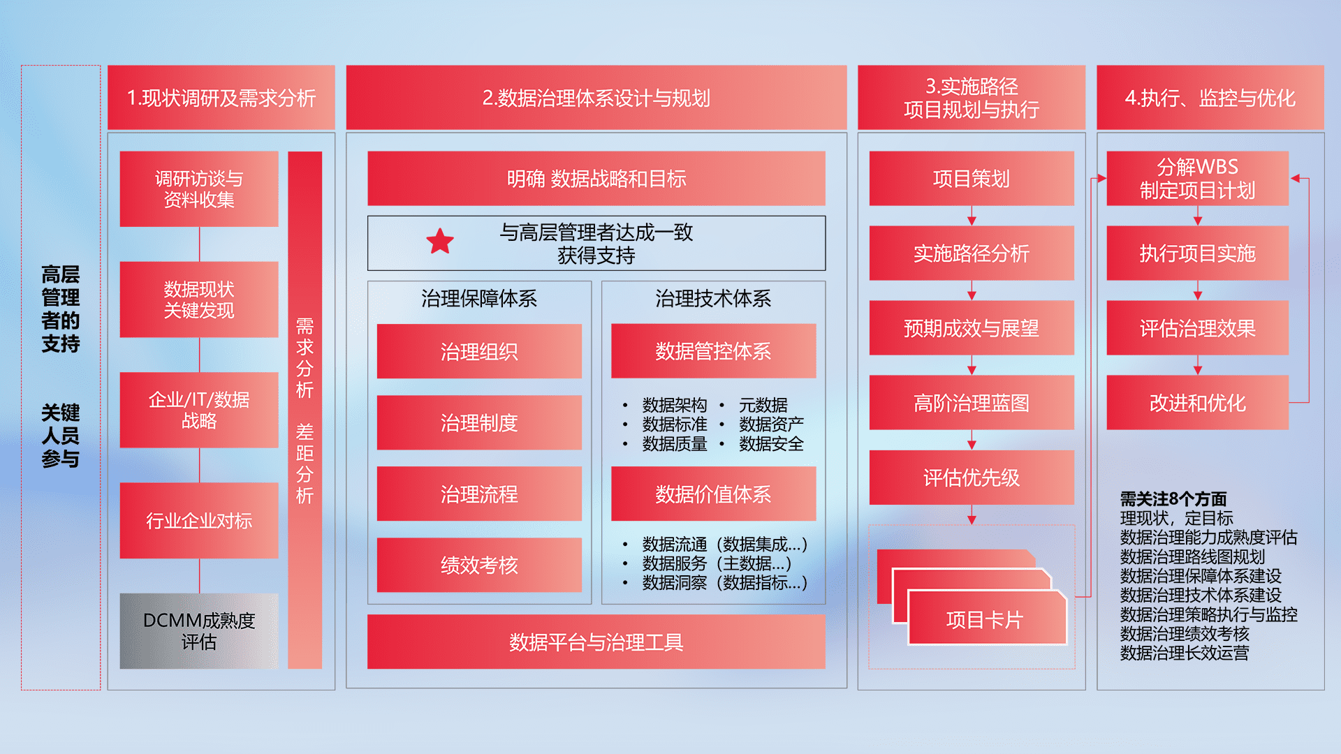 制定并执行统一的数据标准,,规范数据定义和格式,,,,消除冗余和不一致性,,,,实现跨部门和跨系统的数据一致性,,为企业提供标准化的数据基础。。